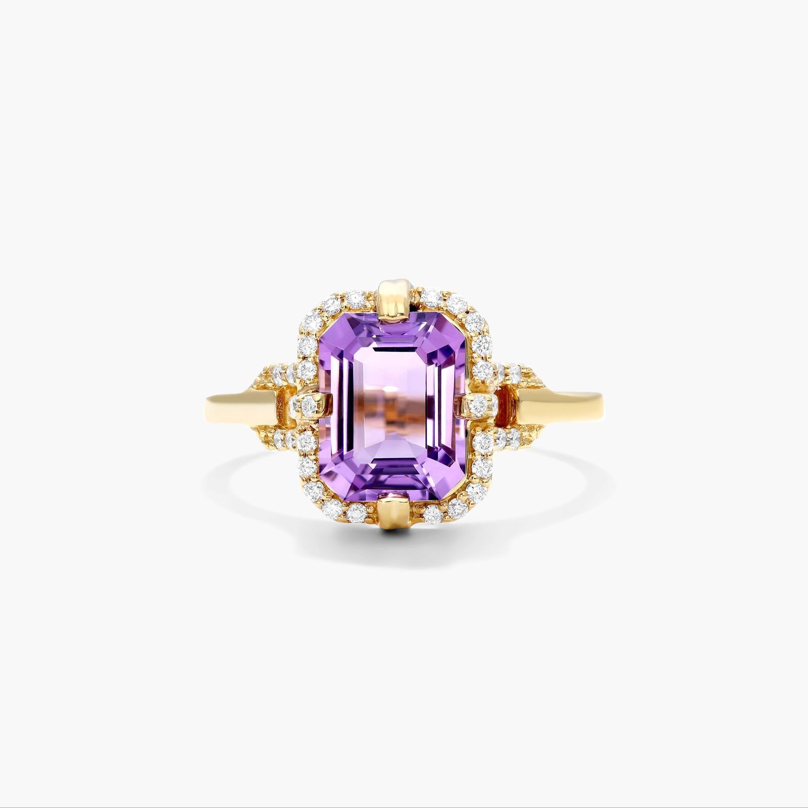 18K Yellow Gold Amethyst Diamond Halo Ring
