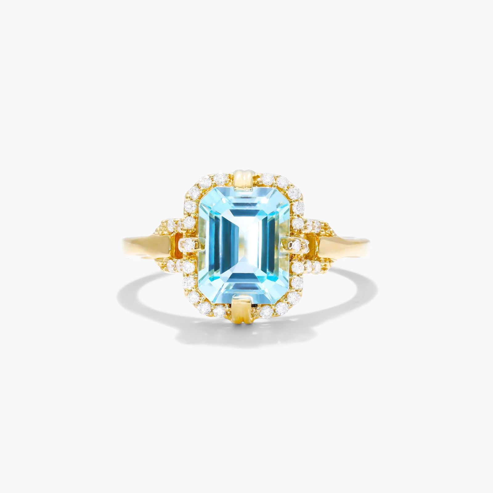 Sky Blue Topaz Diamond Halo Ring In 18K Yellow Gold