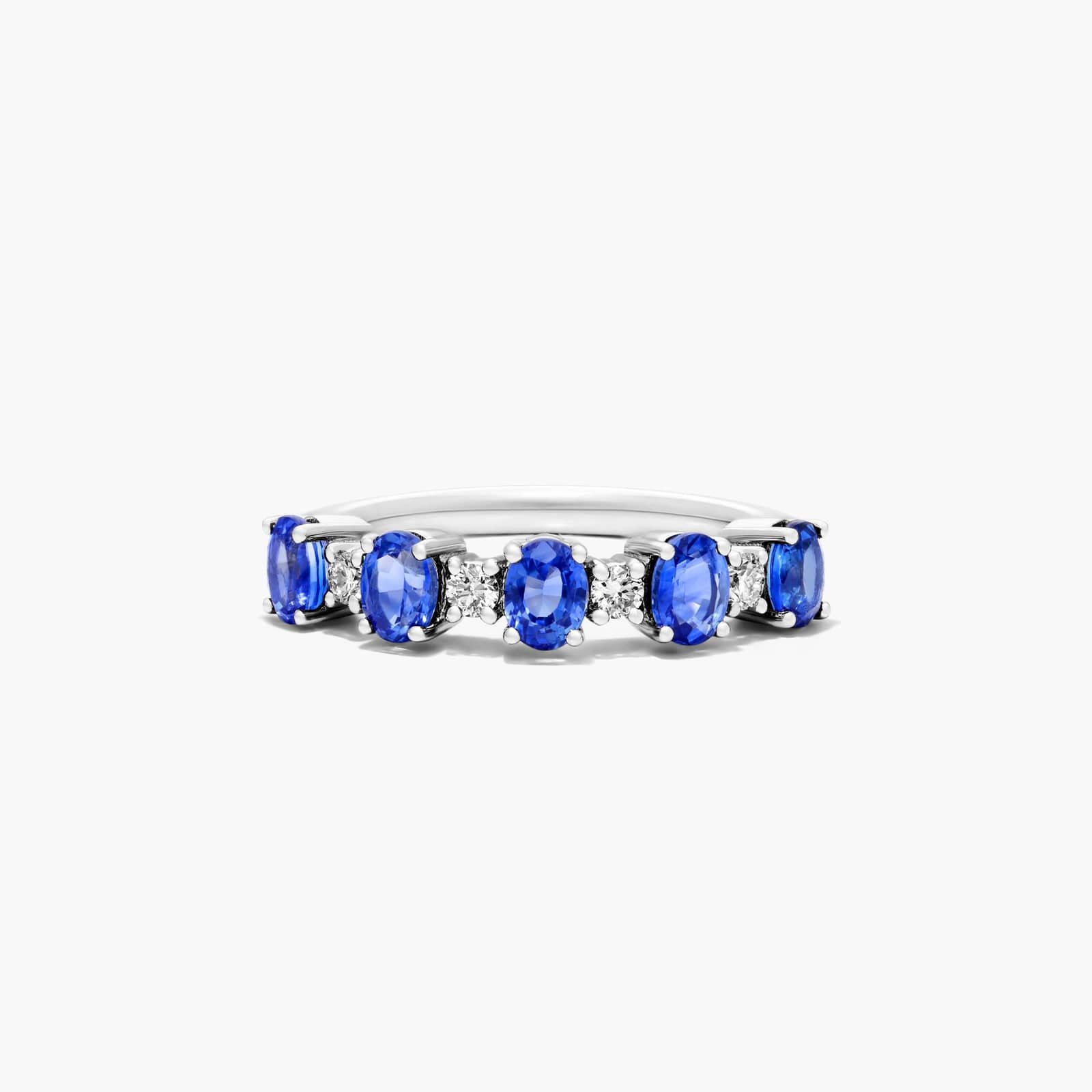 This classic and luxurious band will be a valuable addition to your jewelry collection. Oval fine sapphires alternate with diamonds for a touch of brightness and sparkle.