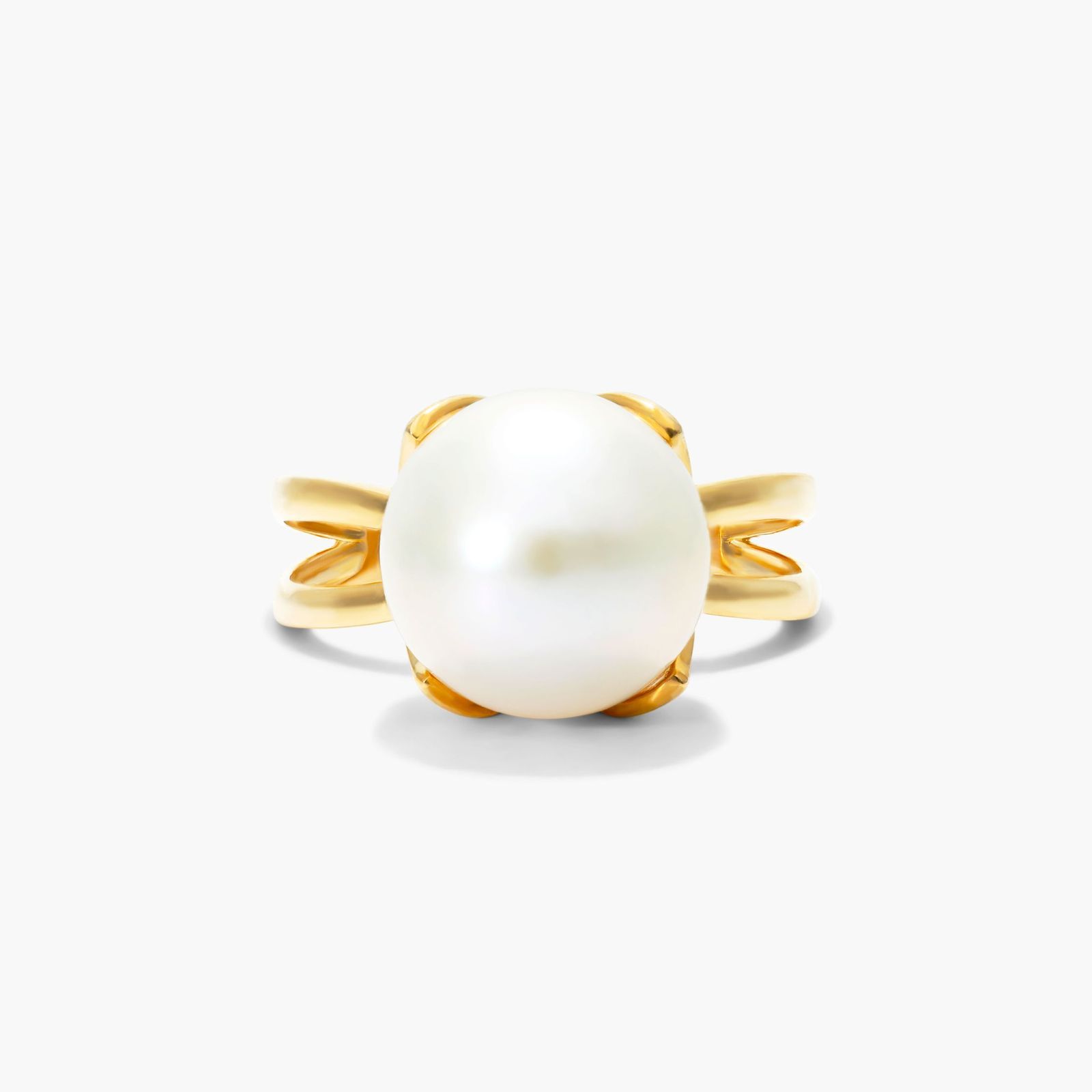 14K Yellow Gold Freshwater Cultured Pearl Wire Leaf Ring (11-12 mm)