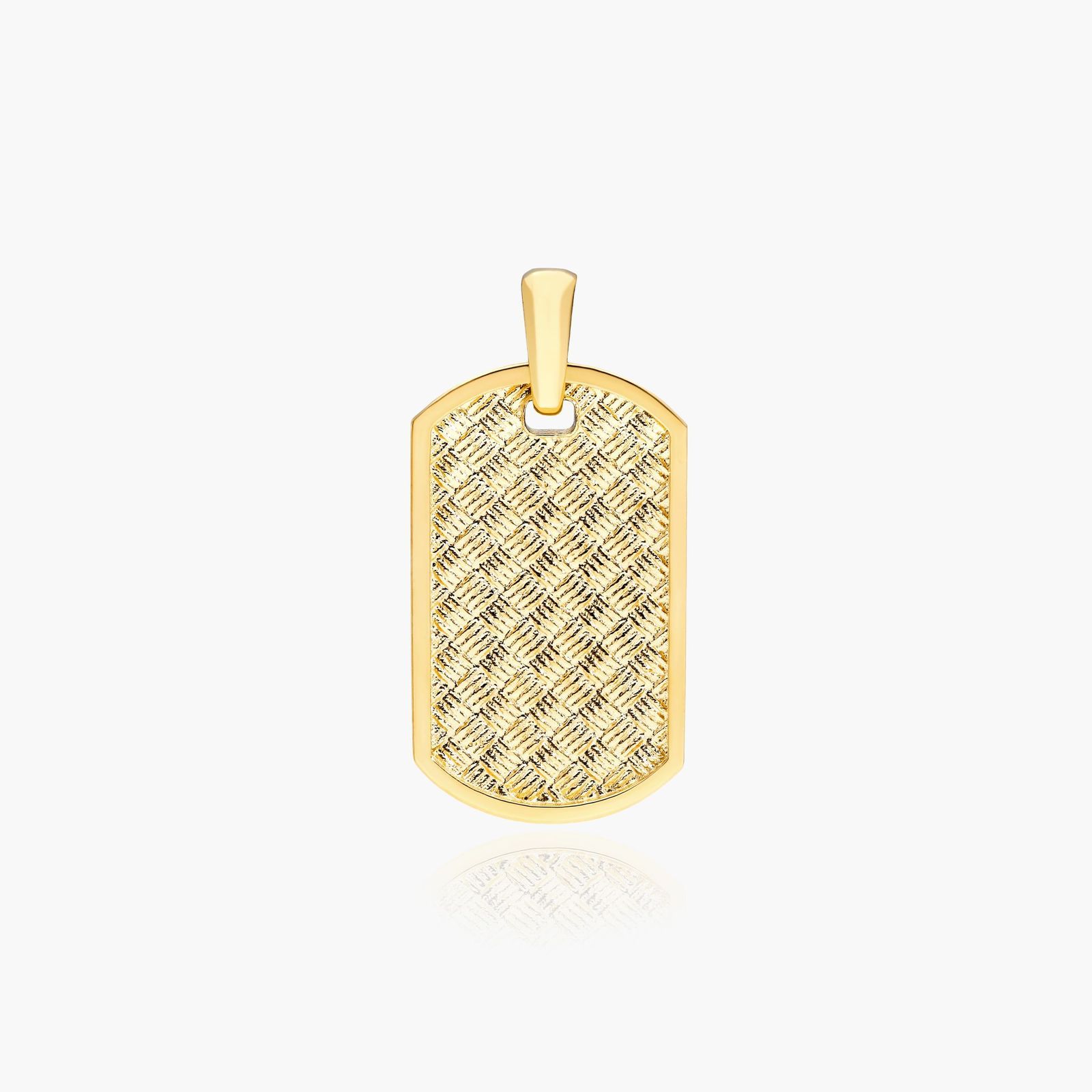14K Yellow Gold Basket Weave Patterned Dog Tag
