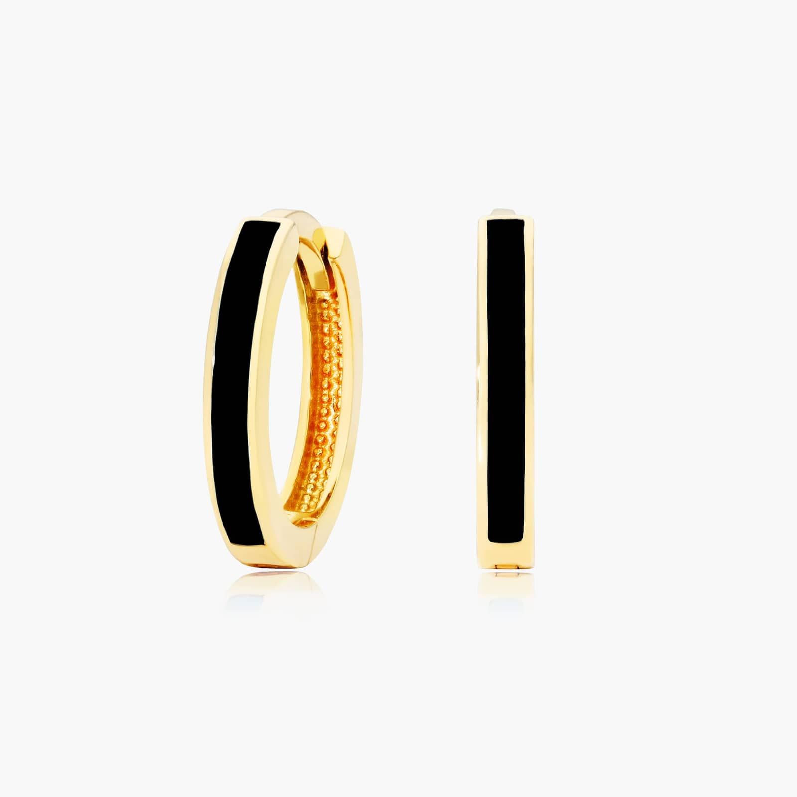 Black Enamel Huggie Hoop Earrings In 14K Yellow Gold