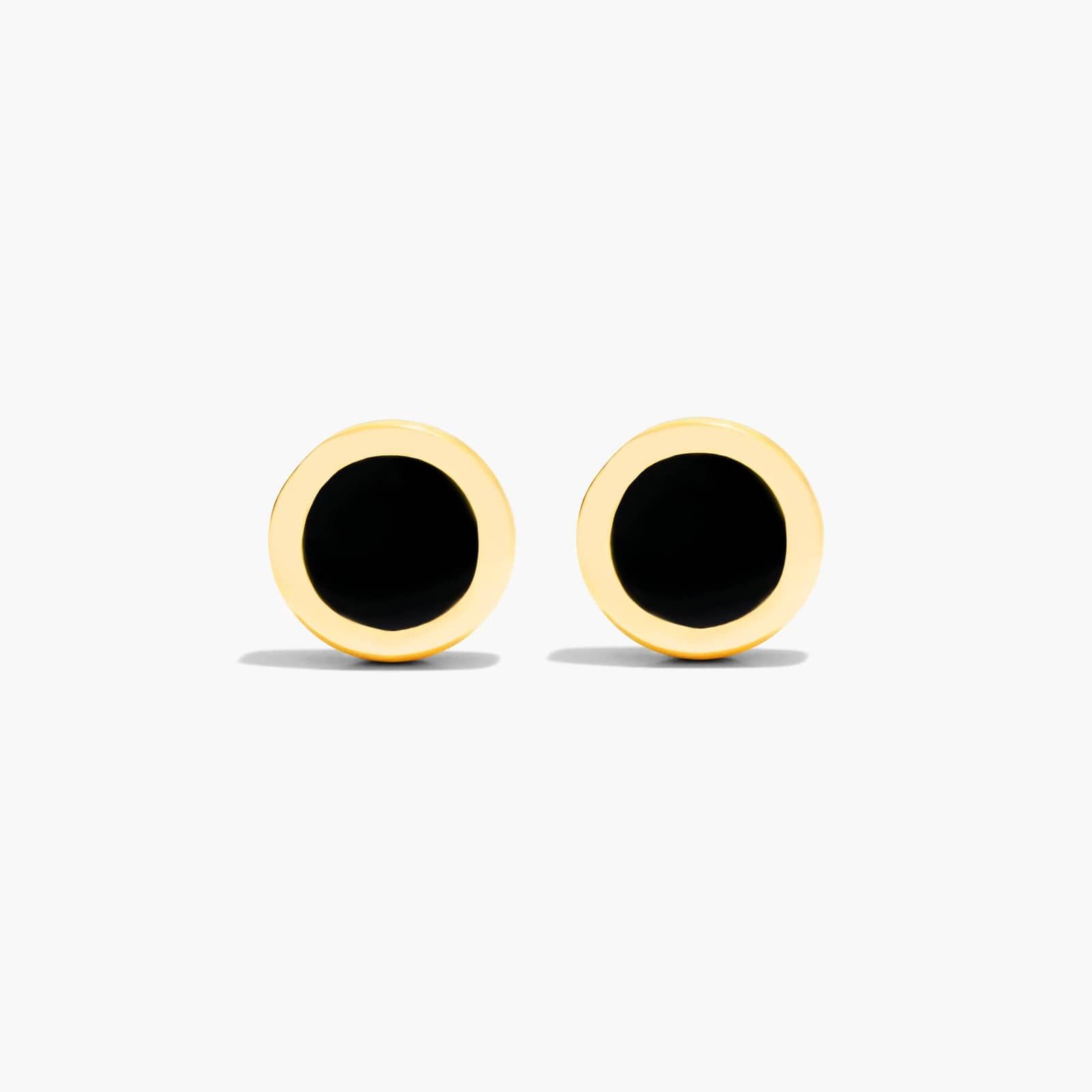 Black Enamel Round Stud Earrings In 14K Yellow Gold