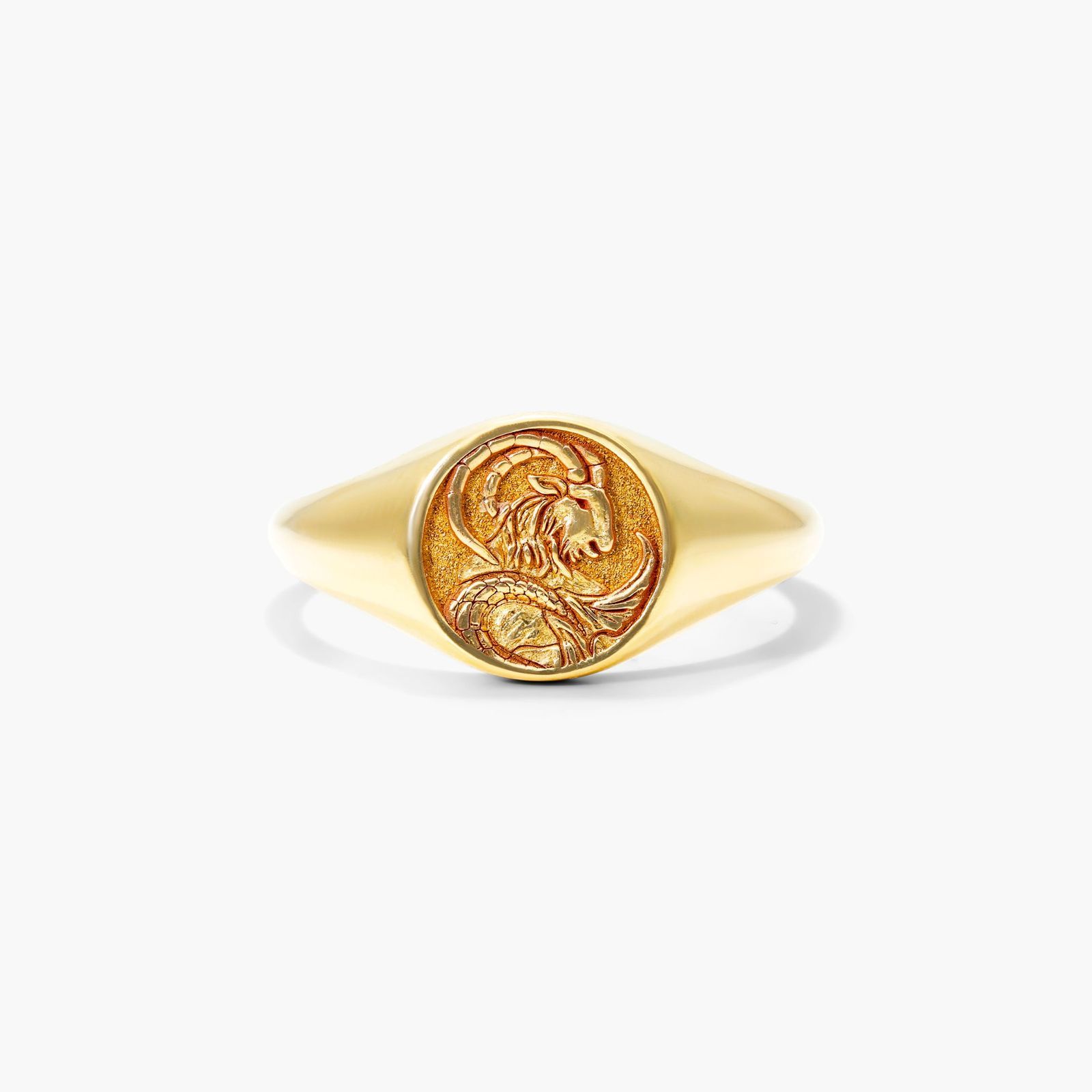 Capricorn Zodiac Signet Ring In 14K Yellow Gold