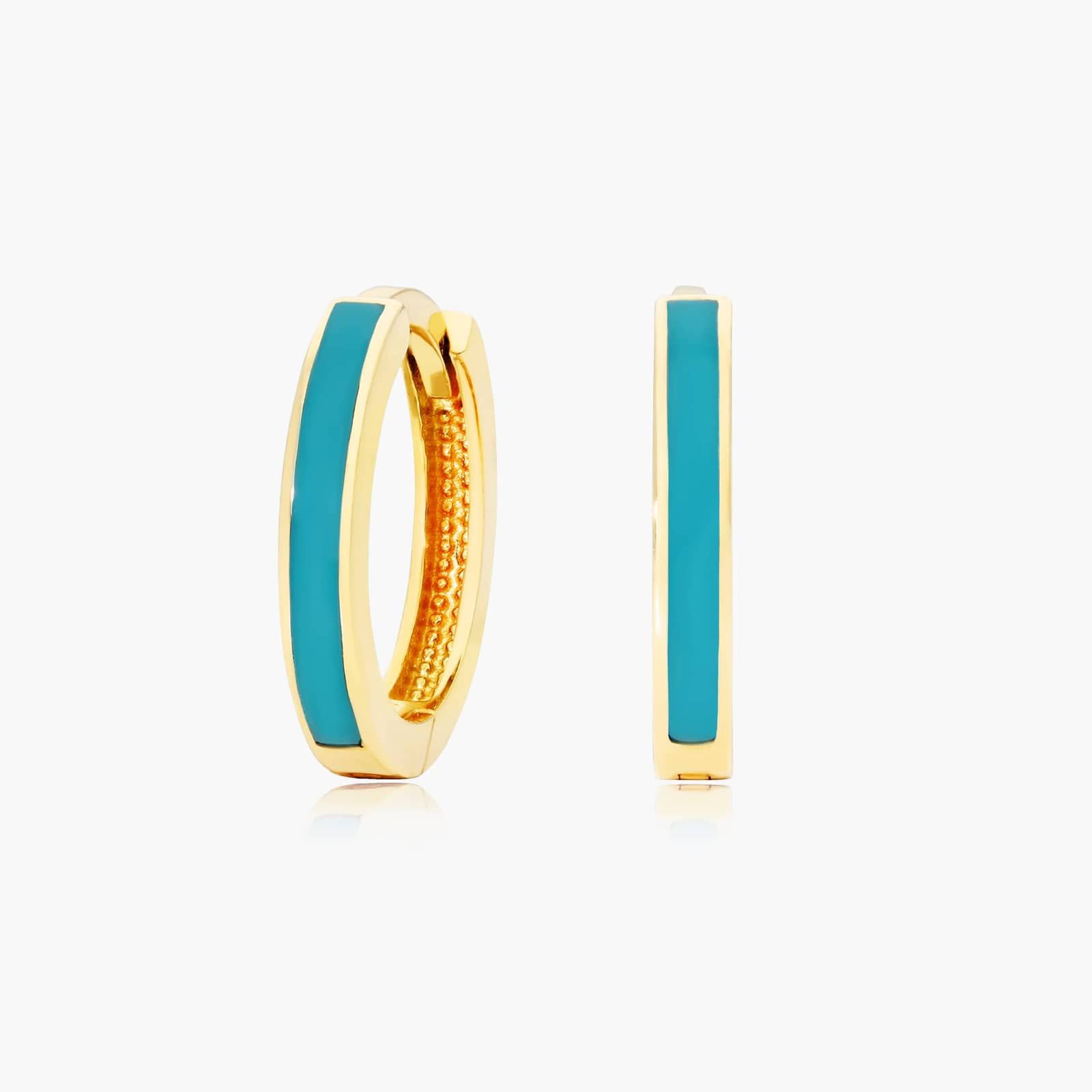 Turquoise Enamel Huggie Hoop Earrings In 14K Yellow Gold