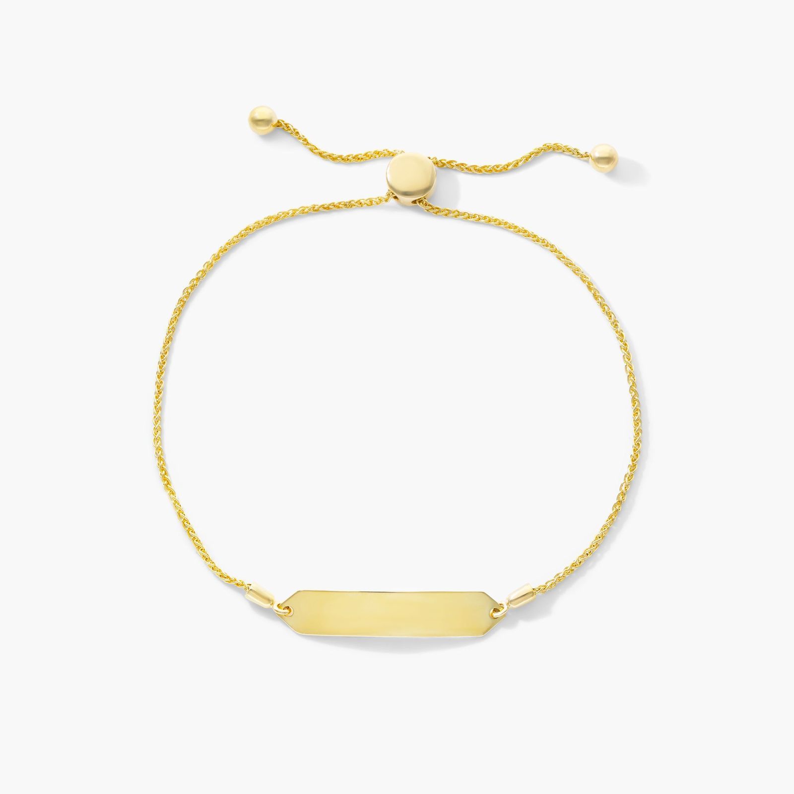 A perfect addition to your jewelry box, this sleek 14K yellow gold polished elongated hexagon is attached to a wheat chain bolo bracelet that adjusts to 9.5 with bead slide.