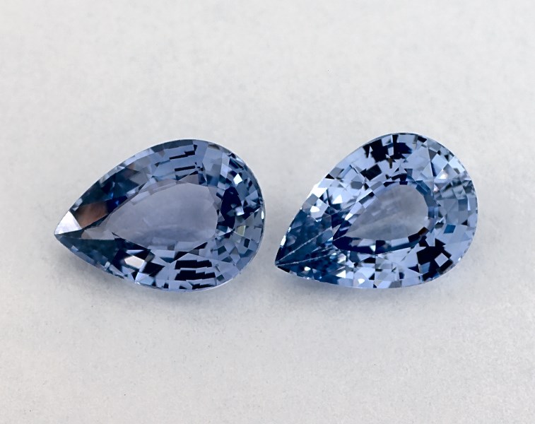 This pair of 1.64 Total Carat Weight Pear Blue Sapphires is sold exclusively by James Allen