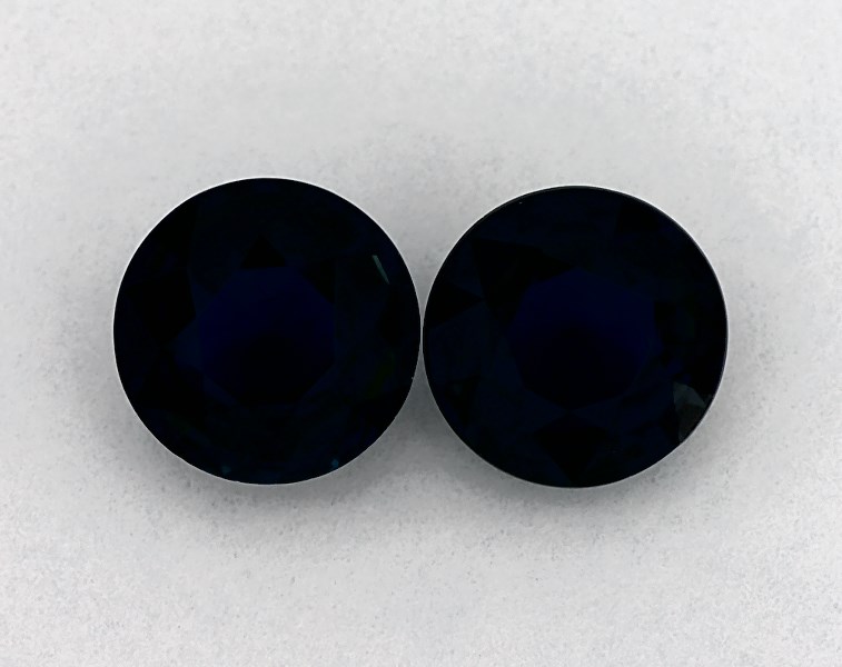 This pair of 1.71 Total Carat Weight Round Blue Sapphires is sold exclusively by James Allen