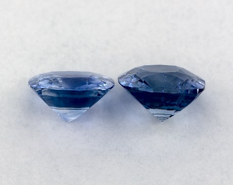 This pair of 2.14 Total Carat Weight Cushion Blue Sapphires is sold exclusively by James Allen