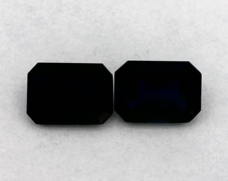 This pair of 2.36 Total Carat Weight Emerald Blue Sapphires is sold exclusively by James Allen