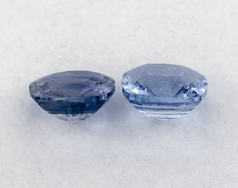 This pair of 2.41 Total Carat Weight Cushion Blue Sapphires is sold exclusively by James Allen