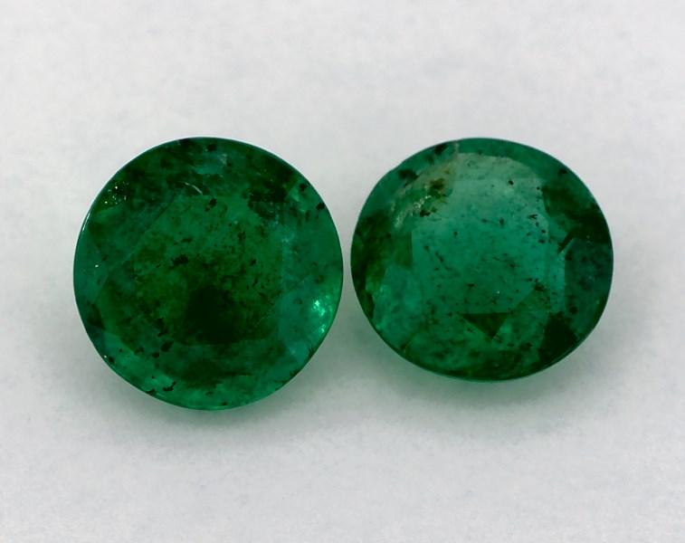 This pair of 1.33 Total Carat Weight Round Green Emeralds is sold exclusively by James Allen