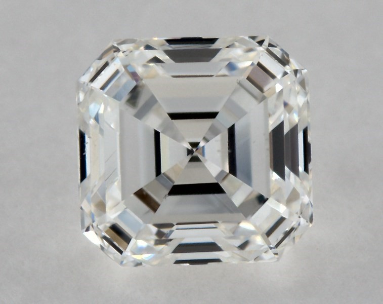 This 0.52 carat asscher diamond F color VS2 clarity has Very Good proportions and a diamond grading report from GIA