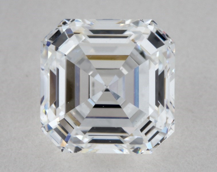 This 0.76 carat asscher diamond E color VVS2 clarity has Very Good proportions and a diamond grading report from GIA