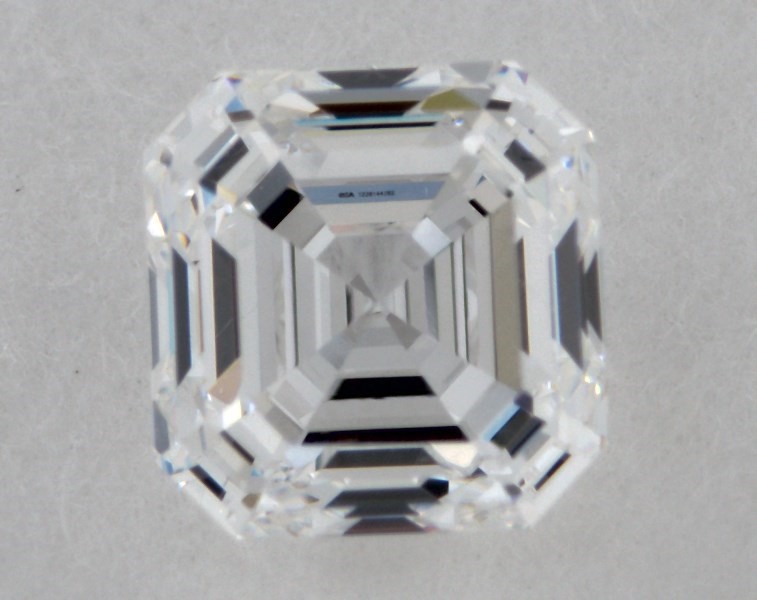 This 0.8 carat asscher diamond E color VS1 clarity has Very Good proportions and a diamond grading report from GIA