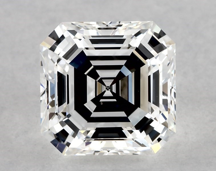 This 1 carat asscher diamond E color VVS2 clarity has Very Good proportions and a diamond grading report from GIA