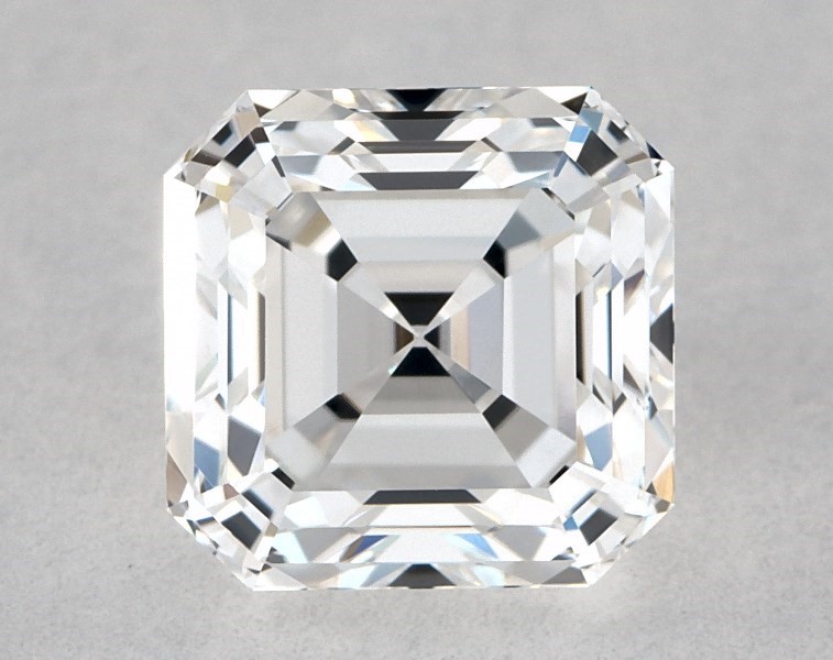 This 1 carat asscher diamond E color VS2 clarity has Very Good proportions and a diamond grading report from GIA