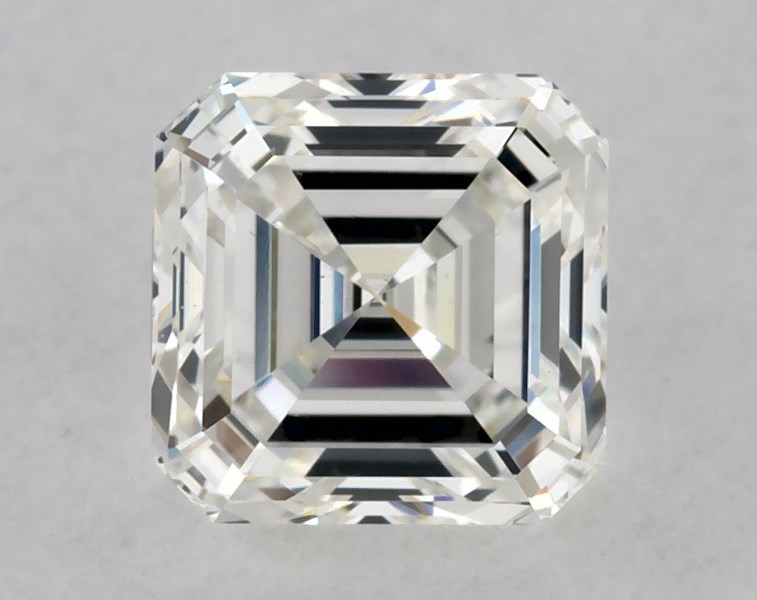 This 1.01 carat asscher diamond H color VS2 clarity has Very Good proportions and a diamond grading report from GIA