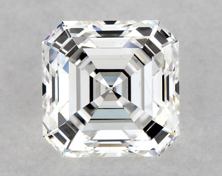 This Lab-Grown diamond 1.55 carat asscher E color VS2 clarity has Ideal proportions and a diamond grading report from IGI