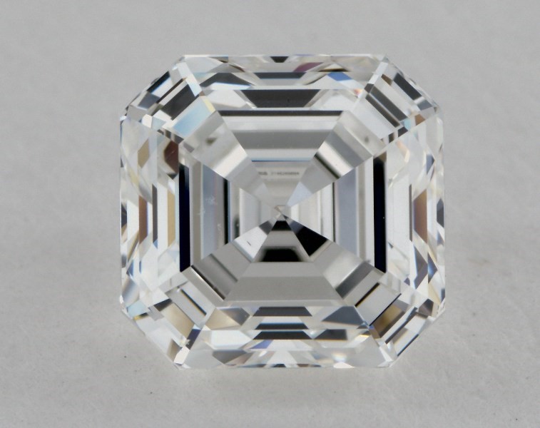 This 2.01 carat asscher diamond F color VS1 clarity has Very Good proportions and a diamond grading report from GIA