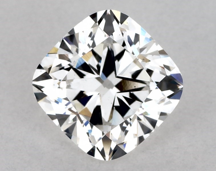 This Lab-Grown diamond 1.54 carat cushion F color VS2 clarity has Ideal proportions and a diamond grading report from IGI