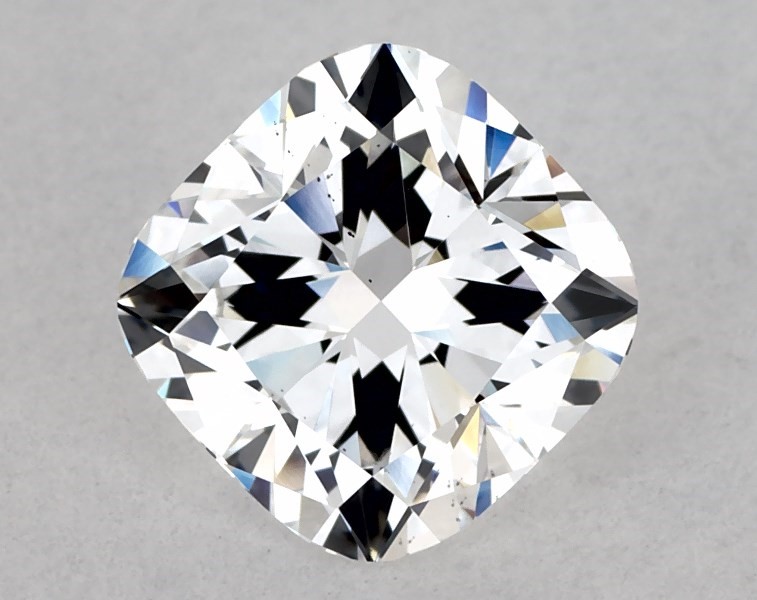 This Lab-Grown diamond 1.59 carat cushion modified D color VS2 clarity has Ideal proportions and a diamond grading report from IGI