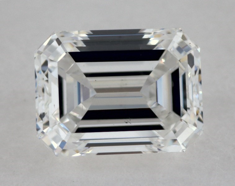 This 0.53 carat emerald diamond F color VS2 clarity has Very Good proportions and a diamond grading report from GIA