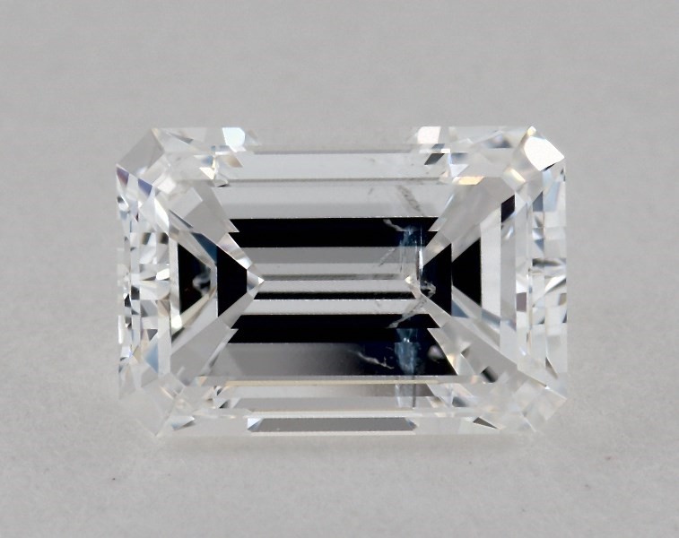 This 0.72 carat emerald diamond D color I1 clarity has Good proportions and a diamond grading report from GIA