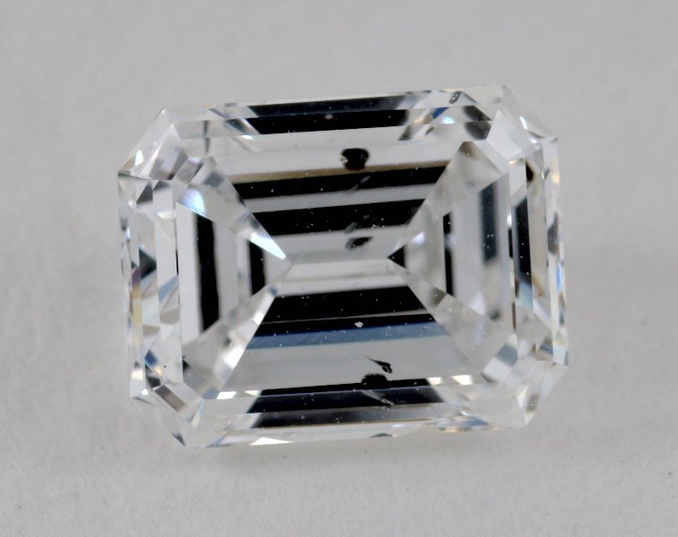 This 0.88 carat emerald diamond E color I1 clarity has Good proportions and a diamond grading report from GIA