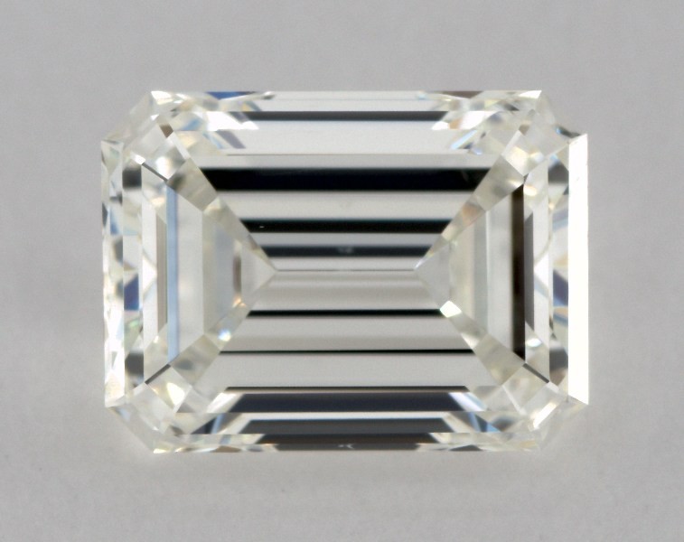 This 0.9 carat emerald diamond J color VS2 clarity has Very Good proportions and a diamond grading report from GIA