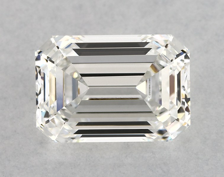 This Lab-Grown diamond 1.54 carat emerald E color VVS2 clarity has Ideal proportions and a diamond grading report from IGI