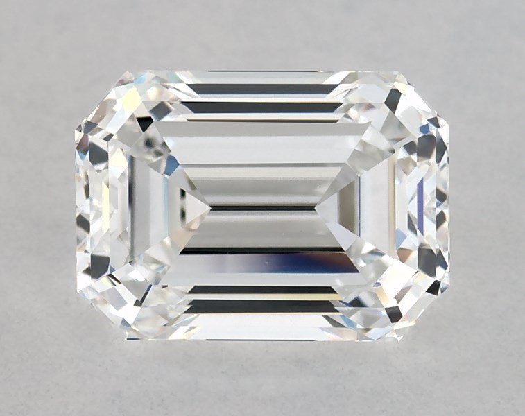 This Lab-Grown diamond 1.57 carat emerald D color VVS2 clarity has Ideal proportions and a diamond grading report from GIA