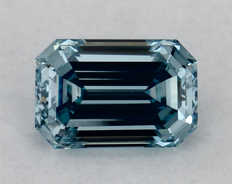 This Lab-Grown diamond emerald cut 0.38 carat Fancy Intense Blue color VS1 clarity has a diamond grading report from IGI