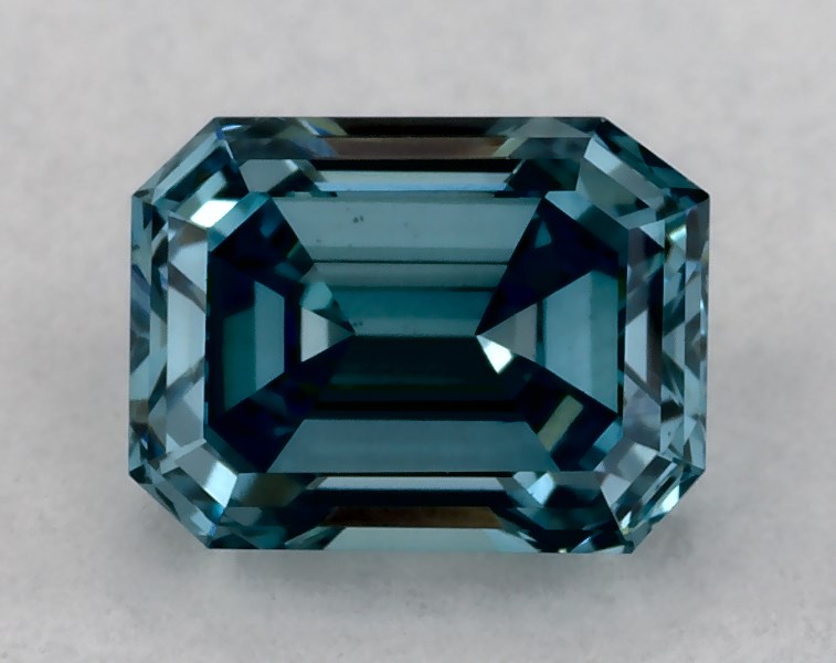 This Lab-Grown diamond emerald cut 0.91 carat Fancy Vivid Blue color VS1 clarity has a diamond grading report from IGI