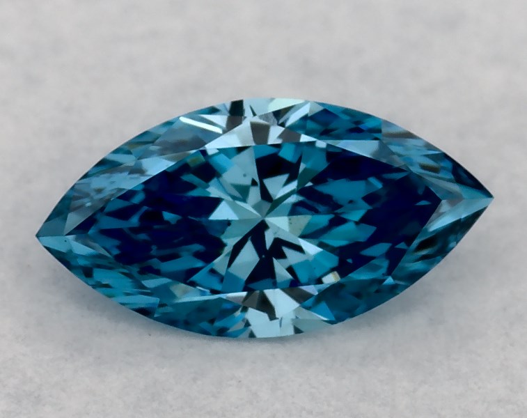 This Lab-Grown diamond marquise cut 0.35 carat Fancy Vivid Blue color VS1 clarity has a diamond grading report from IGI