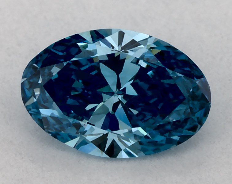 This Lab-Grown diamond oval cut 0.33 carat Fancy Vivid Blue color VVS2 clarity has a diamond grading report from IGI