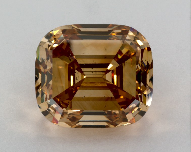 This cushion cut 27.47 carat Fancy Deep Yellow color SI1 clarity has a diamond grading report from GIA