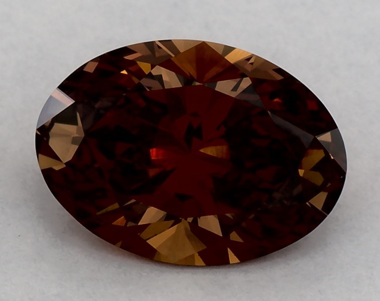 This Lab-Grown diamond oval cut 1.41 carat Fancy Orange Brown color VS1 clarity has a diamond grading report from IGI
