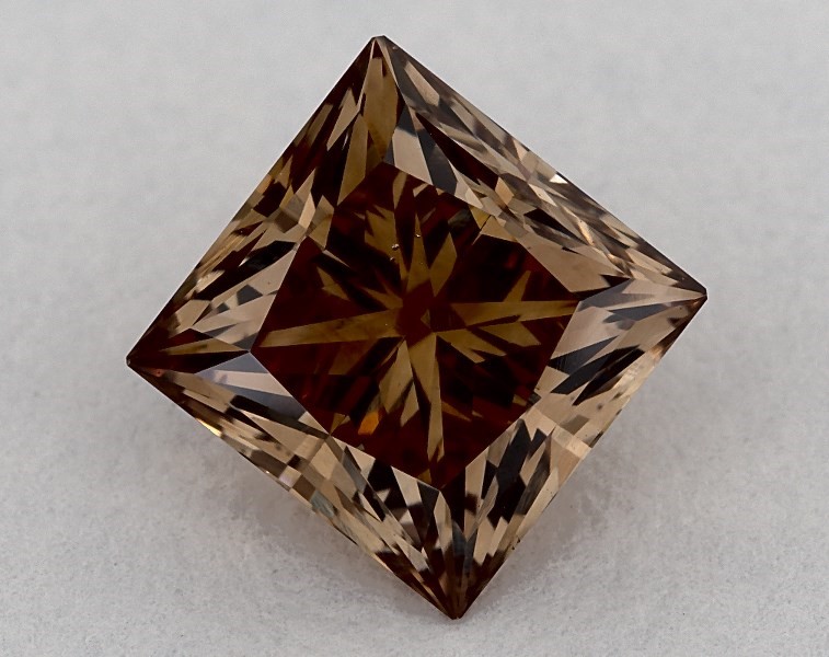 This princess cut 2.1 carat Fancy Dark Orangy Brown color VS2 clarity has a diamond grading report from GIA