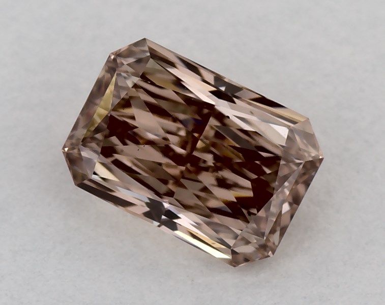 This Lab-Grown diamond radiant cut 0.7 carat Fancy Pinkish Brown color VS2 clarity has a diamond grading report from IGI