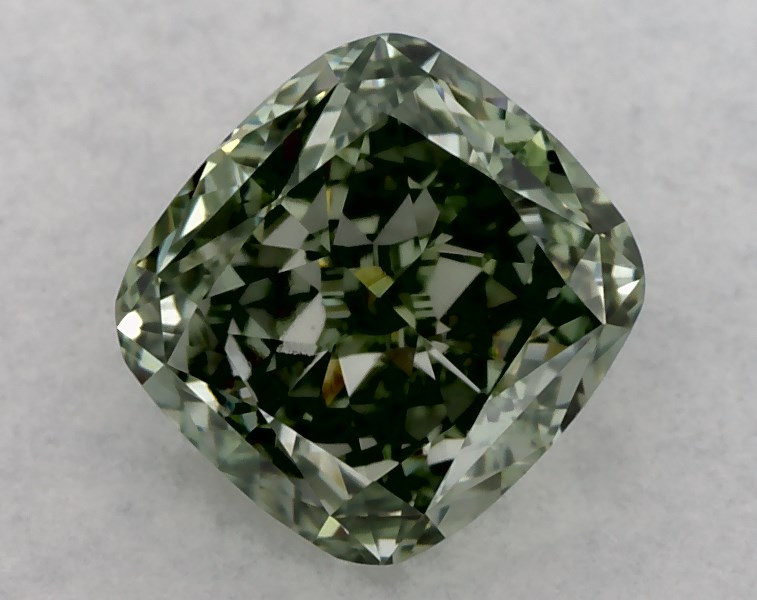 This Lab-Grown diamond cushion modified cut 0.63 carat Fancy Vivid Green color VVS2 clarity has a diamond grading report from IGI