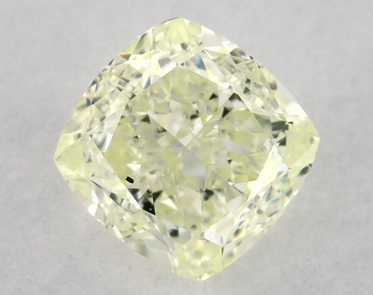 This cushion modified cut 0.64 carat Fancy Yellow Green color SI2 clarity has a diamond grading report from GIA