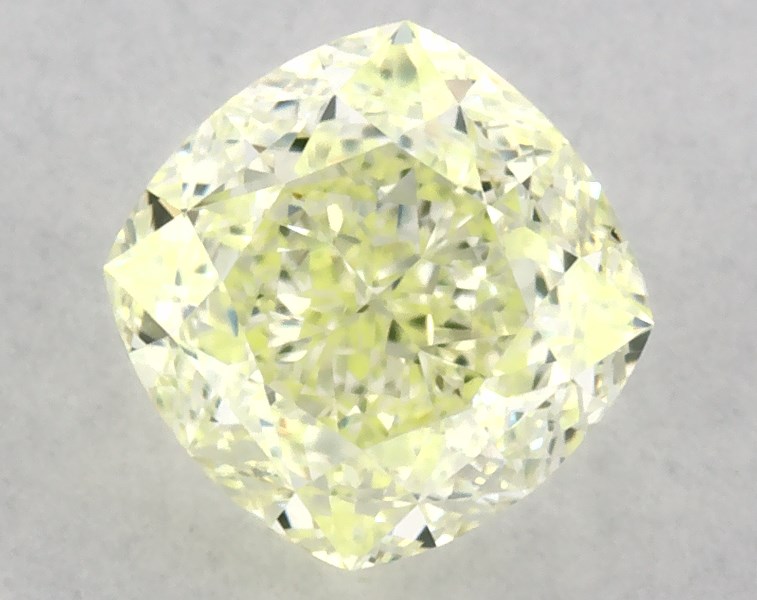 This cushion modified cut 0.69 carat Fancy Yellow Green color VS1 clarity has a diamond grading report from GIA