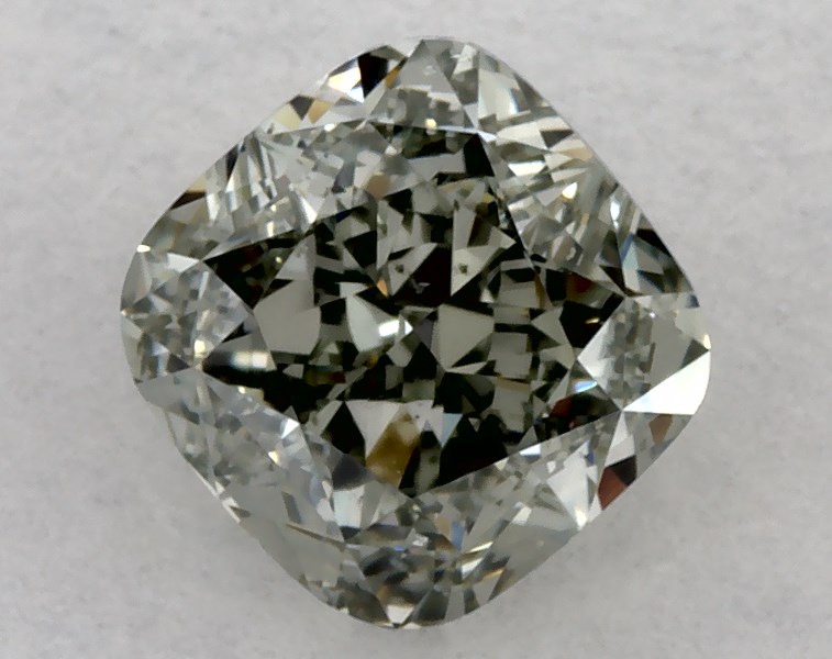 This cushion modified cut 1.01 carat Fancy Gray Yellowish Green color SI1 clarity has a diamond grading report from GIA