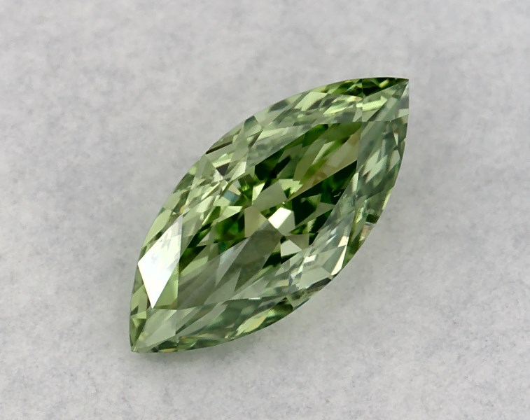 This Lab-Grown diamond marquise cut 0.28 carat Fancy Vivid Green color VS2 clarity has a diamond grading report from IGI