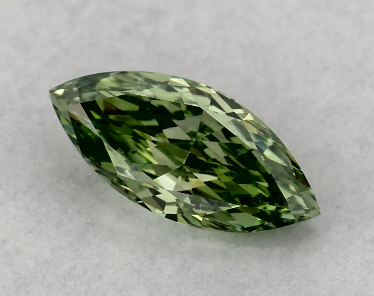This Lab-Grown diamond marquise cut 0.33 carat Fancy Vivid Green color VS1 clarity has a diamond grading report from IGI