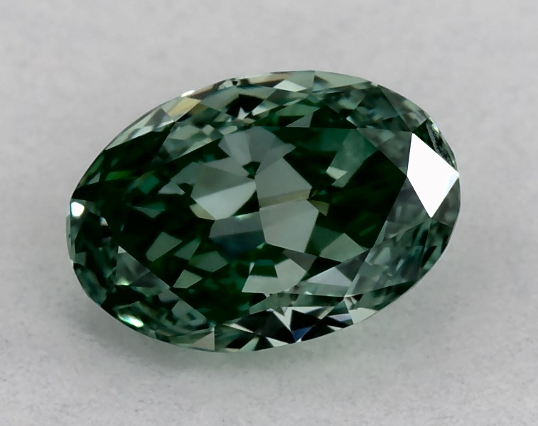 This Lab-Grown diamond oval cut 0.39 carat Fancy Vivid Green color VS2 clarity has a diamond grading report from IGI