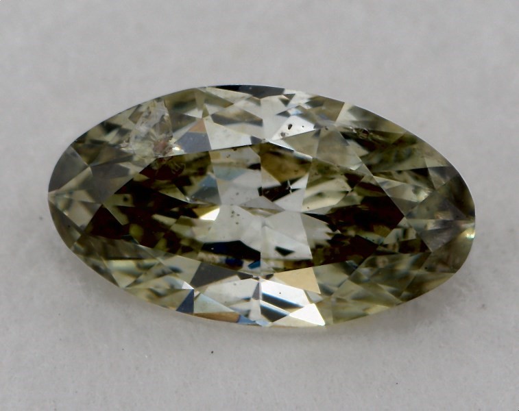 This oval cut 0.44 carat Fancy Grayish Yellowish Green color CO clarity has a diamond grading report from GIA