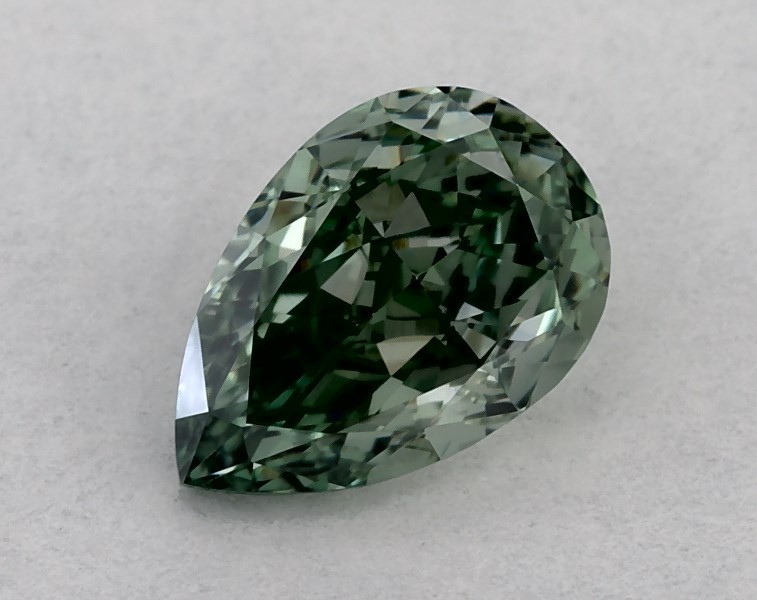 This Lab-Grown diamond pear shaped 0.5 carat Fancy Vivid Green color VS2 clarity has a diamond grading report from IGI