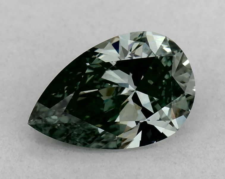 This Lab-Grown diamond pear shaped 0.57 carat Fancy Vivid Green color VS1 clarity has a diamond grading report from IGI